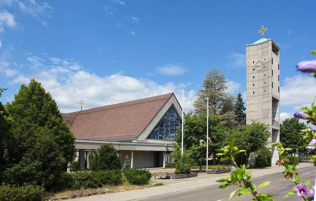 Prälat Kopp – gestorben am 11. Juni 1966 – konnte die Grundsteinlegung am 24. Juli 1966 leider nicht mehr erleben. Unter seinem Nachfolger, Pfarrer Karl Kurz, wurde die Baumaßnahme durchgeführt und vollendet. Die Planung und Bauleitung hatte Oberbaurat Atzberger vom Bischöflichen Bauamt in Speyer. Fertigstellung und Weihetag erfolgten am 22. September 1968.