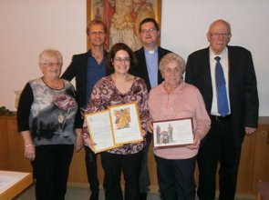 Eine besondere Ehrung für 25-jährige aktive Mitgliedschaft im Kirchenchor Rheinzabern erhielt Isabelle Faust - ausgestellt von Pfarrer Roland Hund für die Gemeinde Rheinzabern - und zusätzlich eine besondere schriftlich Ehrung für Leistungen in der Vorstandschaft - ausgestellt von Regens Markus Magin, Speyer.
