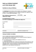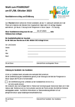 Die Vordrucke für den jeweiligen Kandidatenvorschlag (Pfarreirat, Gemeindeausschuss, Verwaltungsrat) bitte ausfüllen und unterschreiben und in den Briefkasten des zentralen Pfarrbüros werfen - oder in die Briefkästen der Pfarrbüros vor.